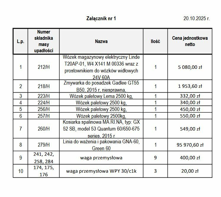 Syndyk masy upadłości Fruvitaland Spółki z ograniczoną odpowiedzialnością z siedzibą w Piotrawinie (sygn. aktIX GUp 28/20) oferuje do sprzedaży ruchomości: